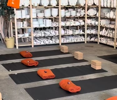 A short yoga session with Roots Yoga then a relaxing pottery painting session!